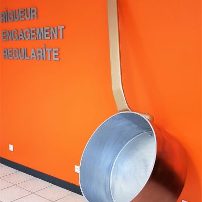 Après le restaurant d’application "l’ATELIER", c’est la poursuite des travaux de réfection de nos locaux, pour vous accueillir stagiaires et professionnels dans un décor de style factory dressé sur une assiette de porcelaine blanche où se croisent les cartes des vignobles et fromages de France ou encore les portraits des chefs d’antan et d’aujourd’hui, ou même, au détour d’un couloir a éclos un jardin de plantes aromatiques.